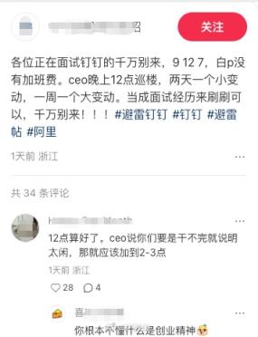 據(jù)此前網(wǎng)傳截圖顯示:一名網(wǎng)友在社交平臺(tái)發(fā)文稱,CEO晚上12點(diǎn)巡樓,兩天一個(gè)小變動(dòng),一周一個(gè)大變動(dòng),當(dāng)成面試經(jīng)歷刷刷可以,千萬別來。