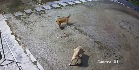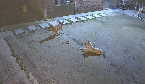 監(jiān)控下的一幕!兩只狗大戰(zhàn)眼鏡蛇:一只佯攻 一只偷襲