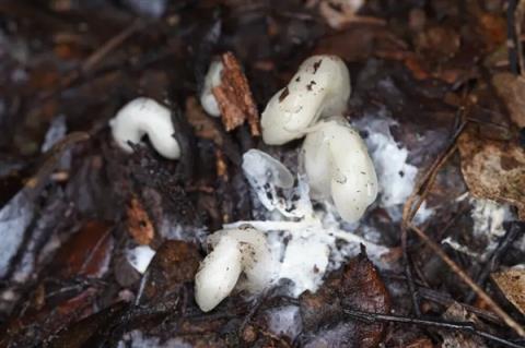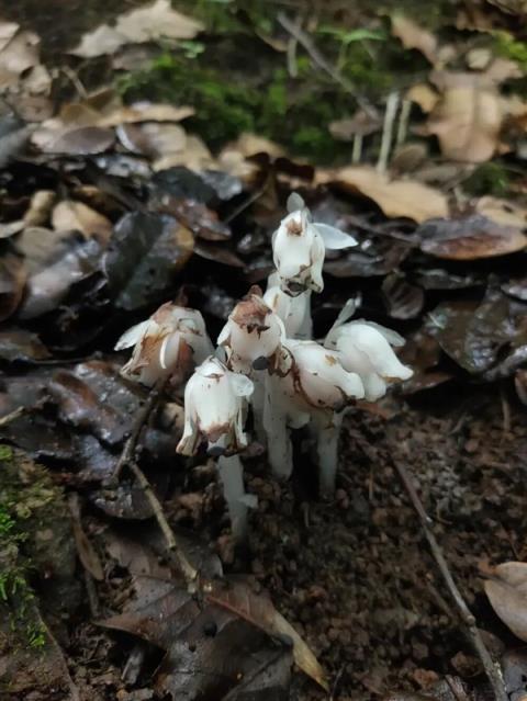 水晶蘭從菌絲堆里長(zhǎng)出來(lái)作者拍攝