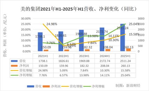 2025年上半年,美的集團(tuán)營收2511.24億元,同比增長15.58%;歸母凈利潤260.13億元,同比增長25.04%。