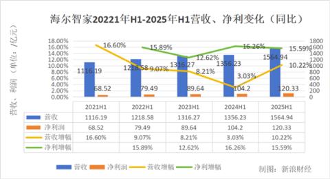 相比之下,2025年上半年,海爾智家營收1564.94億元,同比增長10.22%;歸母凈利潤120.33億元,為三家中最低,但同比增長15.59%,增長穩(wěn)健。