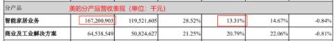 美的“智能家居業(yè)務(wù)”營收1672.00億元,同比增長13.31%。暖通空調(diào)業(yè)務(wù)作為美的該板塊去年同期貢獻(xiàn)近一半集團(tuán)營收的核心業(yè)務(wù),增速也應(yīng)該維持較高水平。