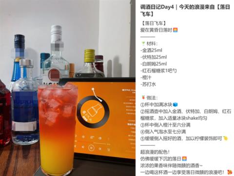 最近,社交平臺上涌現(xiàn)出很多的“微醺博主”,它們常常分享各種美顏的調味酒,粉紫漸變的莫吉托、綴滿櫻花的馬天尼、落日飛車、椰林飄香等,還有各種便利店調酒。