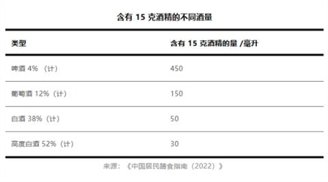 如果實在想體驗,注意悠著點、保持警惕,可別把它不當酒猛喝,一定要提醒自己適量。注意每天的酒精攝入量不超過 15 克[9],相當于啤酒(4%)450ml,葡萄酒(12%)150ml,白酒(38%)一兩(50ml),高度(52%)白酒 30ml。