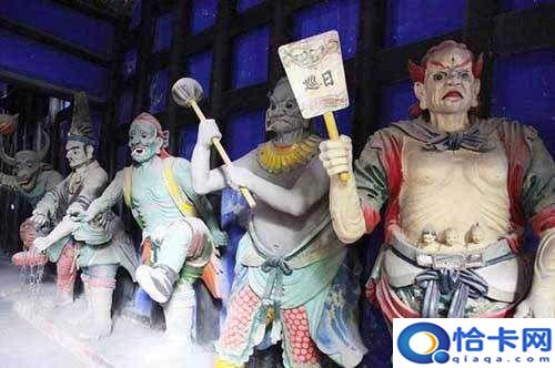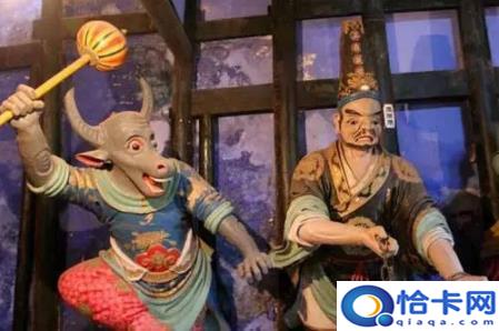 “大帥”中的“王”字并不代表至高無上的身份,鬼王的塑像上身裸露,紅發(fā)獠牙,手拿鎮(zhèn)妖鈴,猙獰兇惡,整個一副夜叉鬼模樣。是十大陰帥了最恐怖的他與黑白無常、牛頭馬面為伍,地位自然不會太高,但因其掛了個“王”字,地位應(yīng)該高于一般鬼卒,大約是個像山大王那樣的頭領(lǐng)。⊙清·蒲松齡《聊齋志異》卷六《考弊司》介紹了一位主管考弊司的鬼王。他的衙署堂下立兩塊大石碑,上面分別刻著“孝弟(悌)忠信”、“禮義廉恥”。