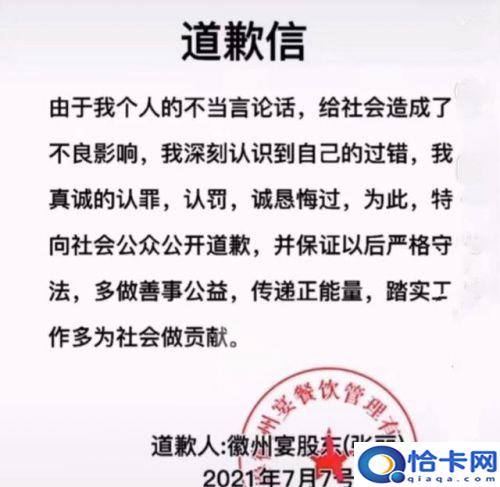 隨后,網(wǎng)上又傳出了一份疑似鄒某某的書面道歉信,但是看過之后,大家發(fā)現(xiàn),這封所謂的道歉信壓根就沒有一點(diǎn)兒道歉的意思,全文都是冠冕堂皇之詞,而且落款處寫的還是徽州宴股東(張麗)。