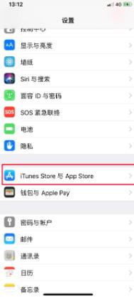二、在“設(shè)置”界面內(nèi)向下滑動(dòng),找到“iTunes與App Store”一項(xiàng)并打開