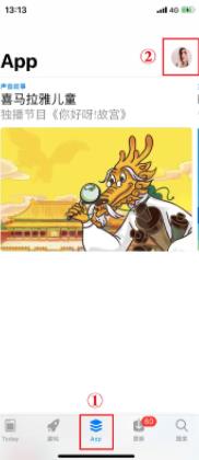 二、在界面底部單擊“app”后進(jìn)入頁(yè)面,再點(diǎn)擊右上角的頭像框進(jìn)入“賬戶”頁(yè)面