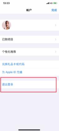三、進(jìn)入“賬戶”后,點(diǎn)擊“退出登錄”后即可重新登陸新的Apple ID