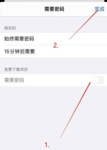 3、然后將需要密碼復(fù)選框關(guān)閉,并且點(diǎn)擊完成。