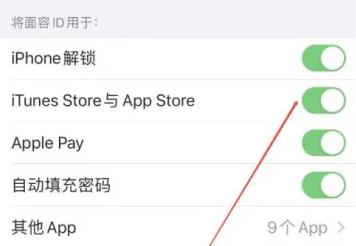 8、最后返回設(shè)置,找到面容ID與密碼,登錄后,關(guān)閉app store的復(fù)選框就可以。