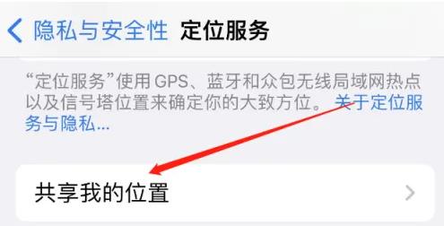 2、點開定位服務頁,跳轉(zhuǎn)到“共享我的位置”界面。
