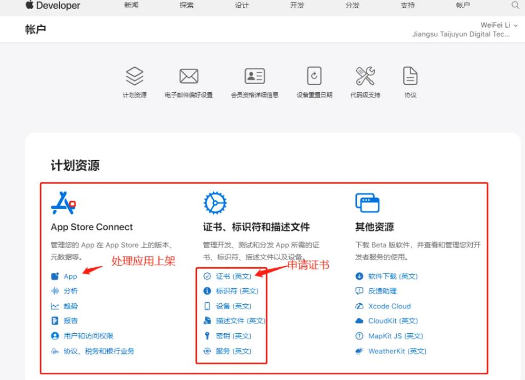 12、申請完后交費99美元一年,然后會進行審核,期間可能會電話核實。審核通過后,重新登錄https://developer.apple.com/,點擊Account會看到以下菜單,這時賬號就注冊成功了。