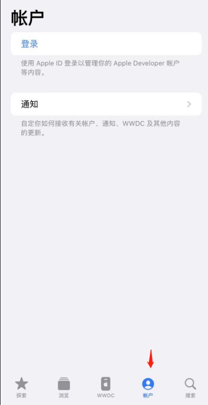 6、下載安裝后打開Apple Developer這個APP,點擊底部的“賬戶”: