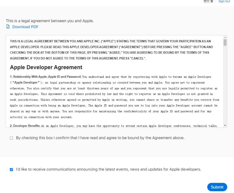 3、點擊“Submit”同意協(xié)議