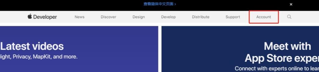 2、打開https://developer.apple.com/,點擊Account菜單