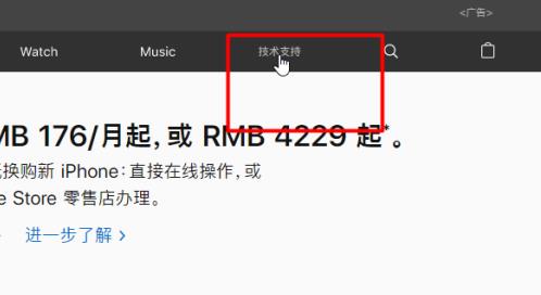 1、第一步,打開(kāi)瀏覽器,搜索并進(jìn)入蘋果官網(wǎng),點(diǎn)擊上方的技術(shù)支持選項(xiàng)。