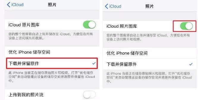 完成所有照片的原件下載后,在「設置 → 賬戶 → iCloud → 照片」中關閉 iCloud 照片圖庫,此時所有的照片就變成了此設備上的本地數(shù)據(jù)。
