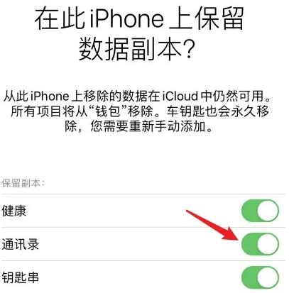 退出時將保留副本選項后方的開關開啟即可,如健康、通訊錄、鑰匙串、Safari等都開啟。