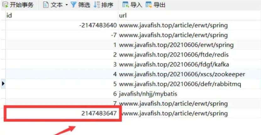 2、插入一個(gè) id 為最大值 2147483647 的值,如下圖所示